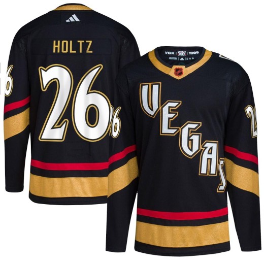 New Men's Adidas Vegas Golden Knights Alexander Holtz Gold Black Reverse Retro 2.0 Jersey - Authentic View larger